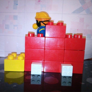 Avec des cubes, on peut faire plein de choses: une maison, une route, un mur, un camion... Mais si tout s'écroule, il faut recommencer!