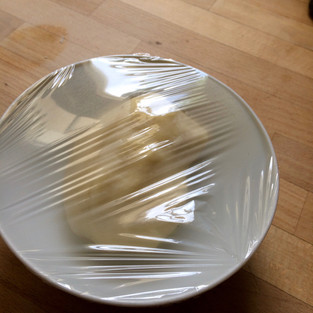 6. Dépose la pâte dans un bol et filme-le. Laisse la pâte refroidir une heure.